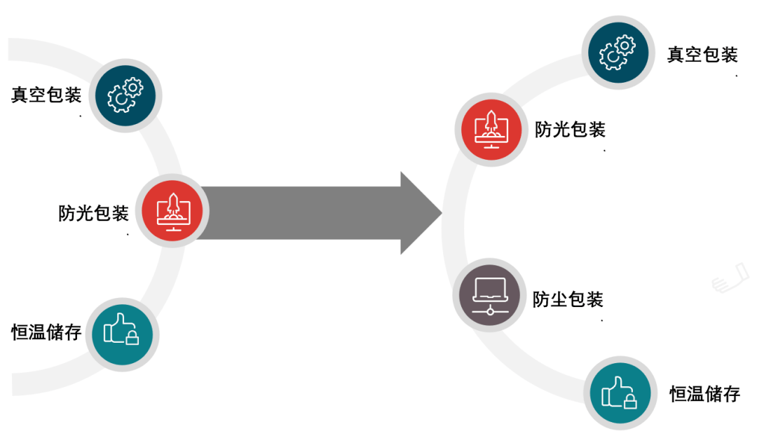 真空包装、防光防尘包装、恒温储存等在普通环境下拆箱查验会影响性能品质的高新技术货物。目的地与注册地海关在同一关区范围内。